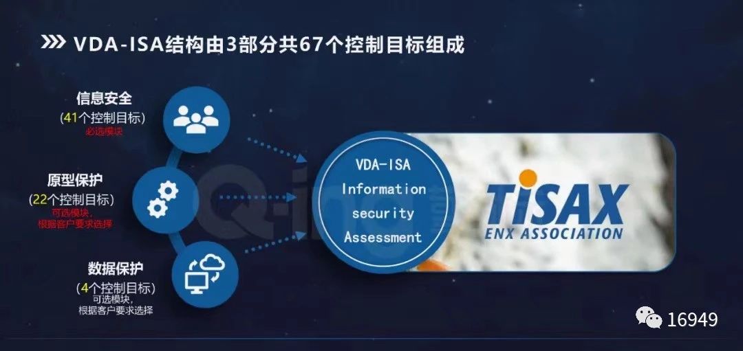 VDA-ISA 檢查表共有3個模塊(信息系統(tǒng)安全、原型保護(hù)、數(shù)據(jù)保護(hù))和67個控制項,它是TISAX 審核提供商頒發(fā) TISAX 標(biāo)簽的依據(jù)。